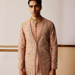silhouette that asserts presence, while the fluid kurta beneath brings movement and intention. This look embodies a new kind of romance — powerful, self-assured, and strikingly contemporary.